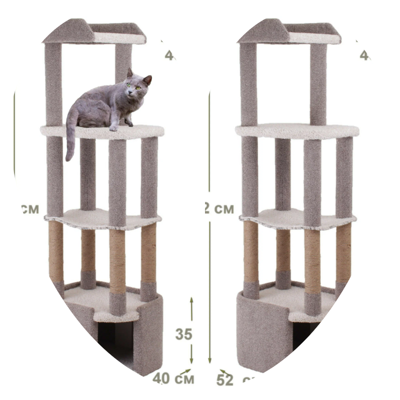 Когтеточка для кошек с домиком и лежанками "Етк Зоо" Kiss 162, 40*52*162, ковролин, джут интересное: