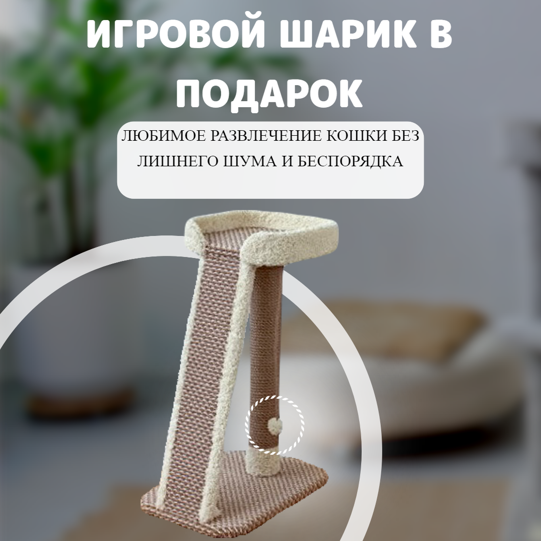 Когтеточка джутовая с игрушкой - Комплекс для кошек Олимп, цвет бежевый интересное: