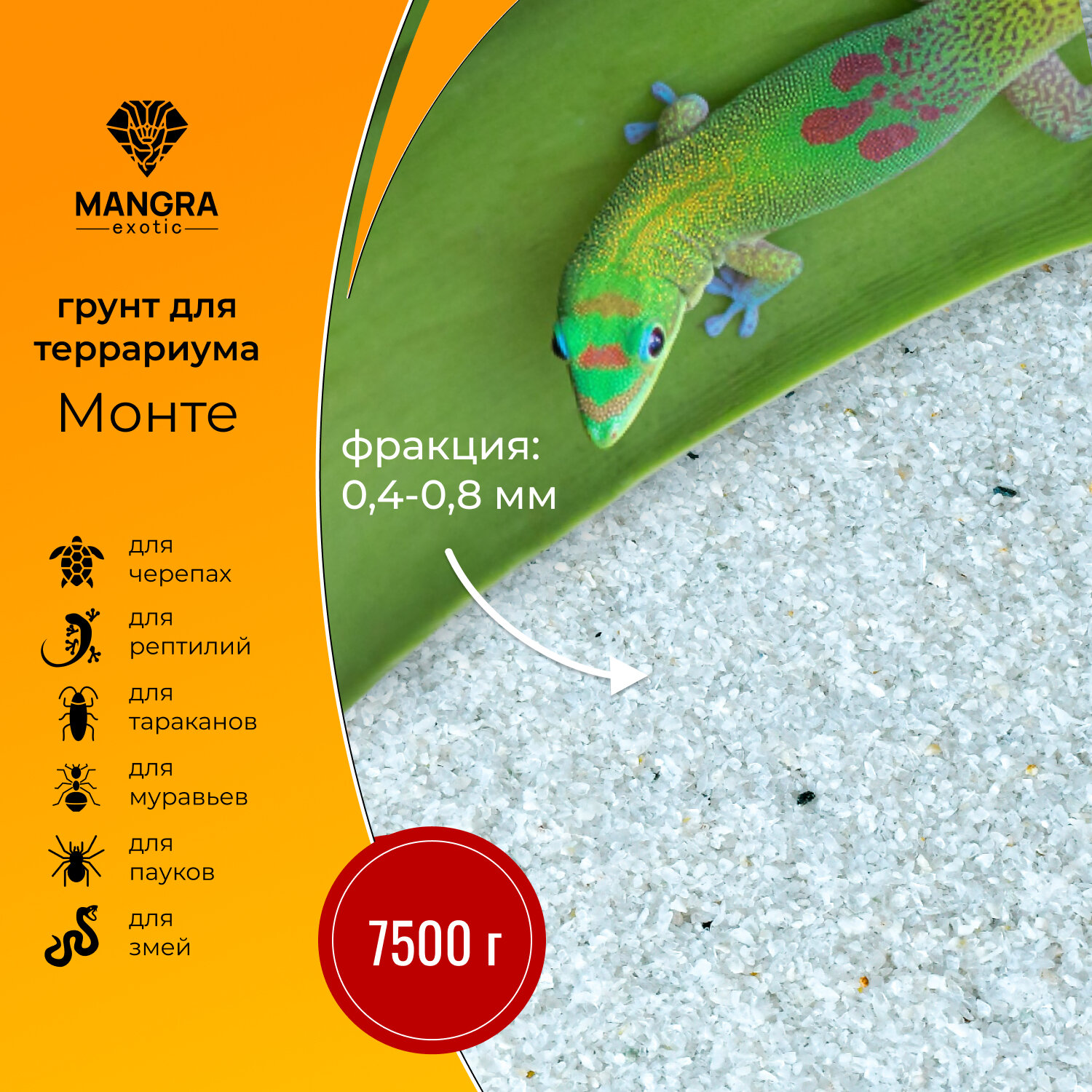 Натуральный грунт MANGRA exotic "Салинас Грандес" естественный белый, 2,5 кг (фракция 0,8-2 мм), для террариума, для черепах, тараканов, пауков и змей