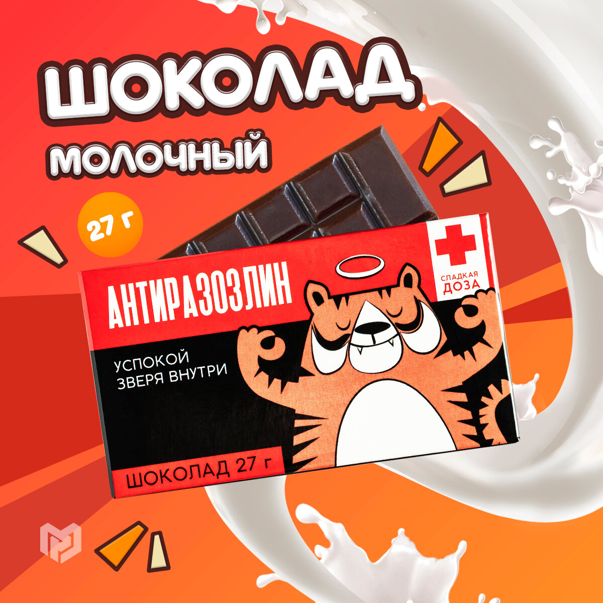 Купить Подарочный молочный шоколад с приколом "Антиразозлин", 27 грамм