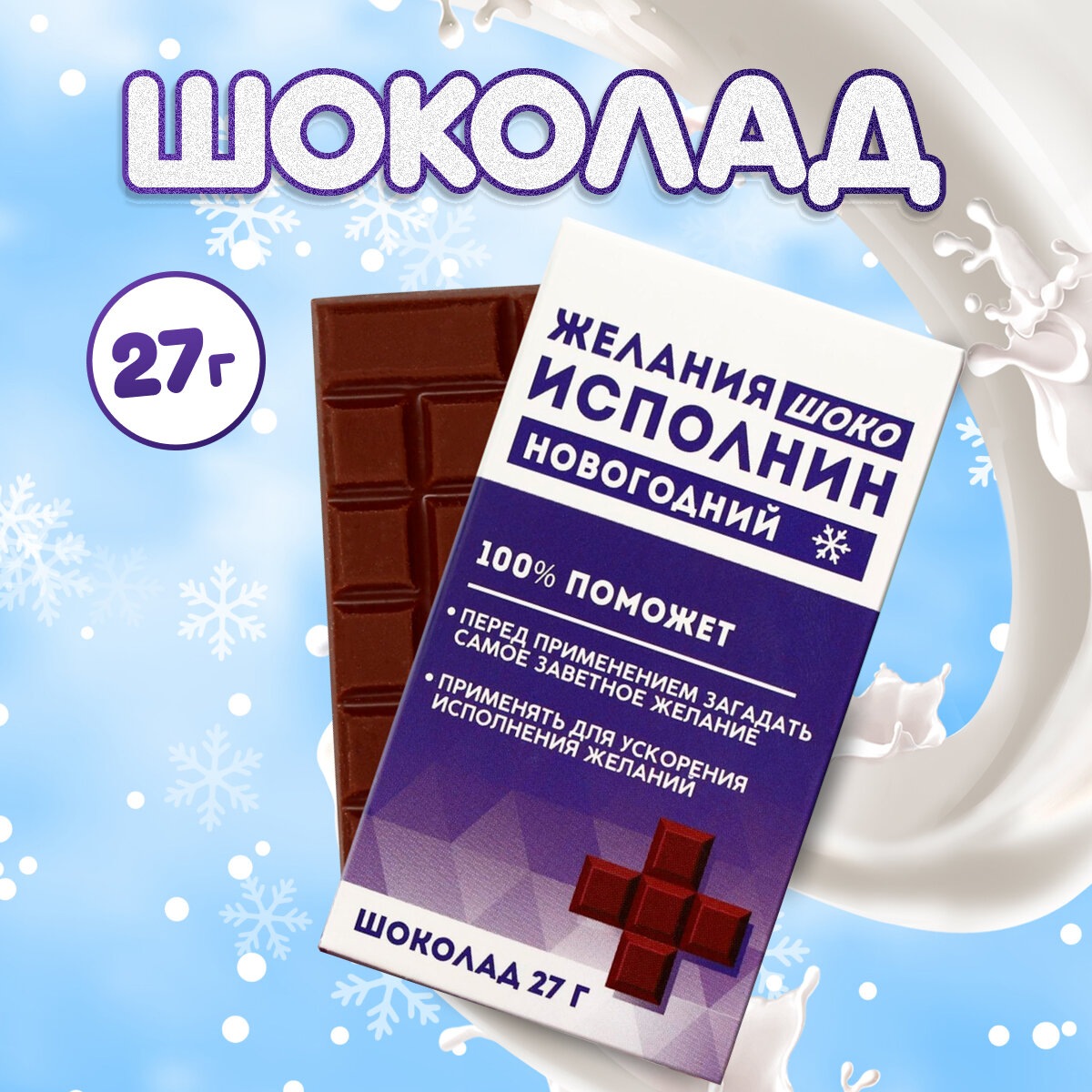 Подарочный молочный шоколад "Противогрустин", 560 ккал, мини-плитка, без добавок, 27 г