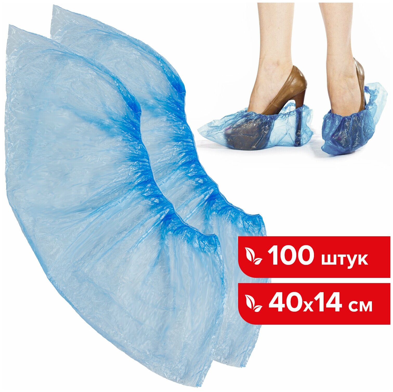 Бахилы комплект 100 штук (50 пар) в упаковке, эконом, размер 40х14 см, 2.2 г, ПНД, LAIMA, 103423