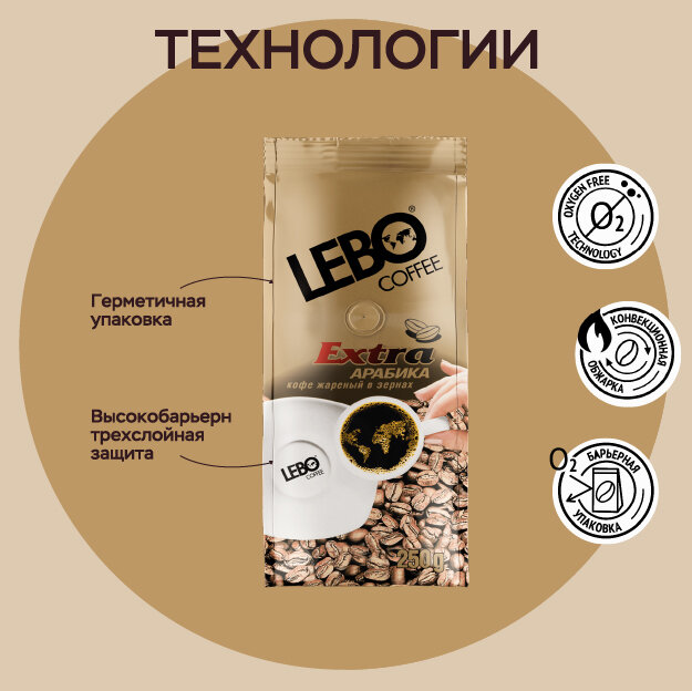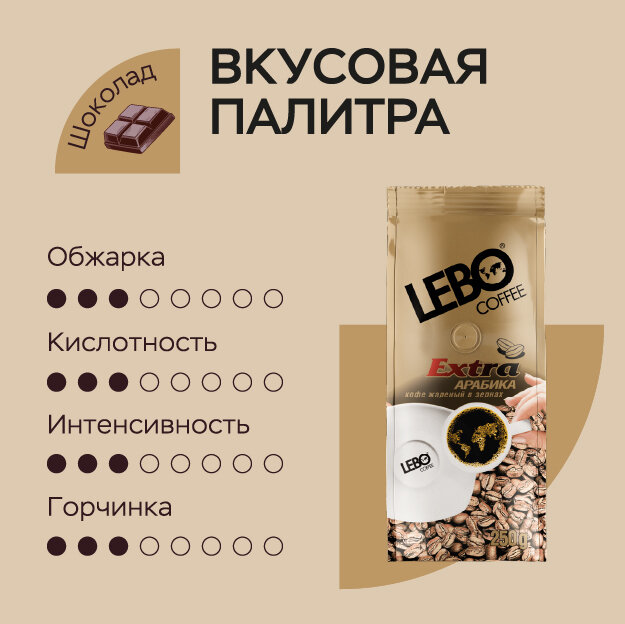 Кофе в зернах "Lebo" Extra, Арабика 100%, 250г, средняя обжарка интересное: