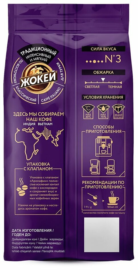 | Дополнительная информация | Зерновой кофе «Жокей Традиционный» подходит для всех способов приготовления. |