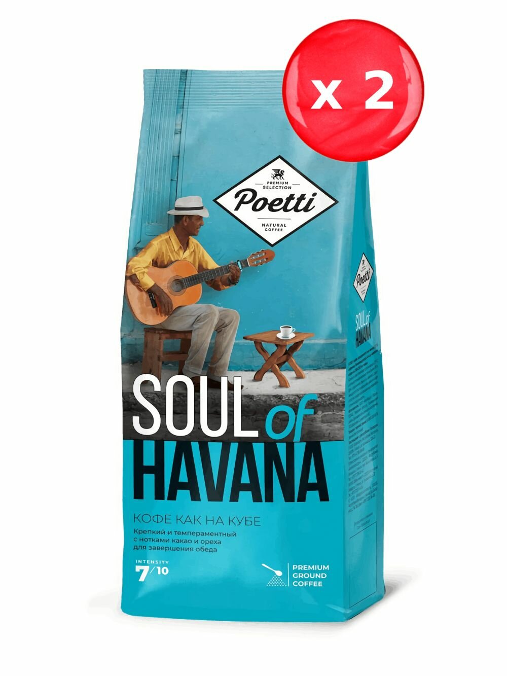 Кофе молотый Poetti Soul of Havana Арабика/Робуста, 200 г х 2 шт + ложка