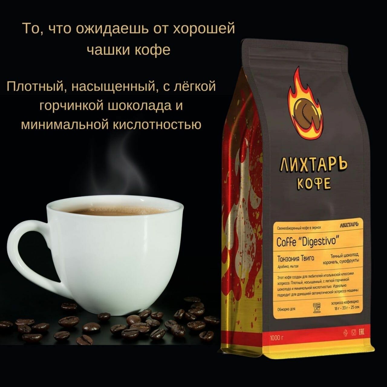Кофе молотый Digestivo Танзания Твига 1000г Лихтарь Кофе