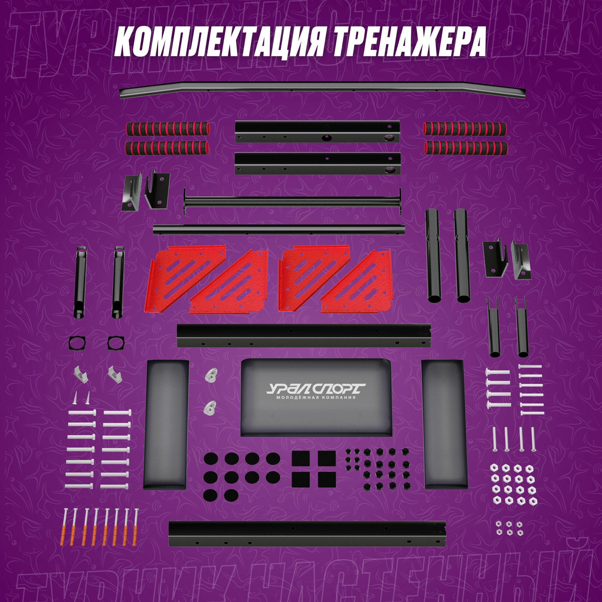 | В комплекте | грипсы, крепеж, крепление для боксерской груши, крепления-крюки, подлокотники |