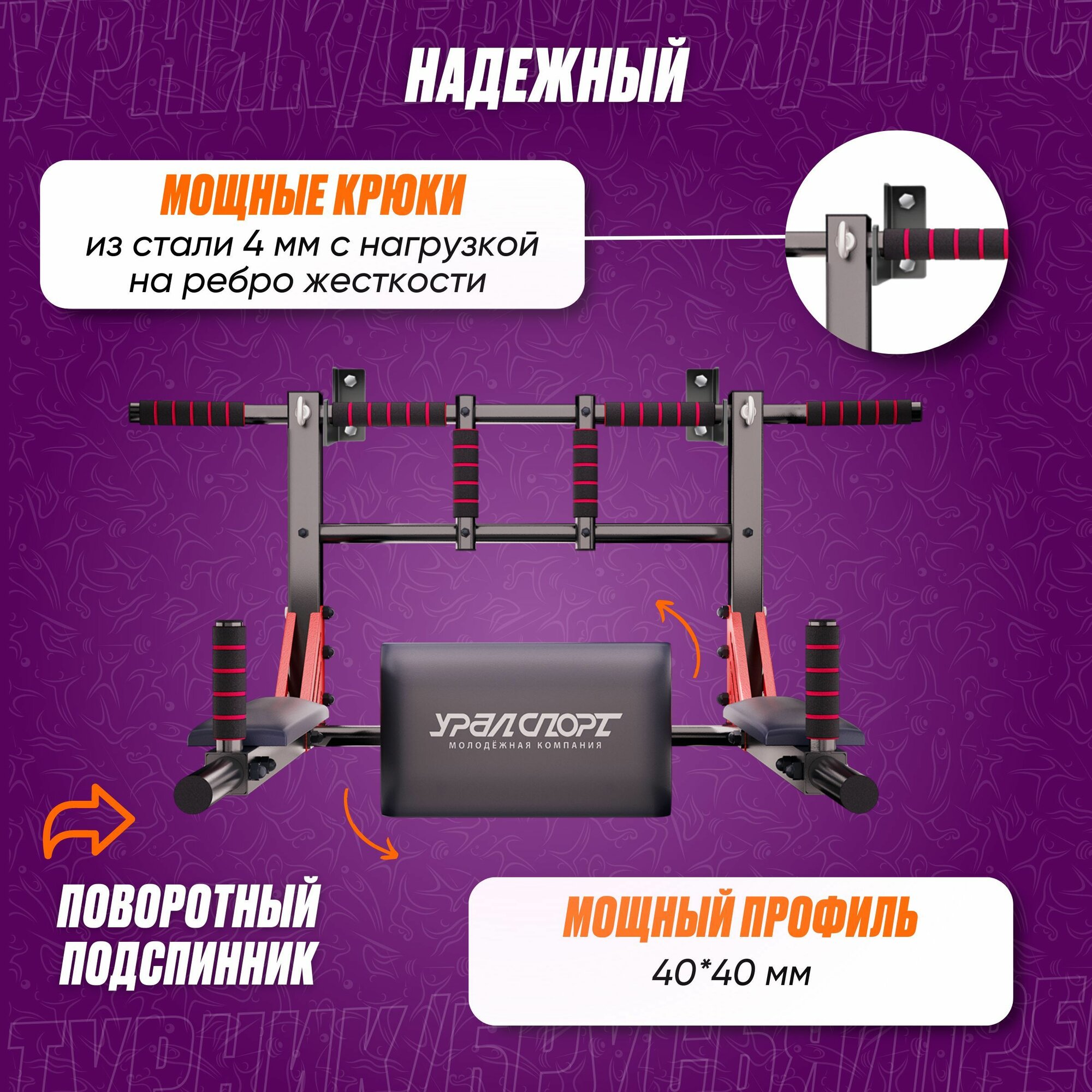 Турник 3 в 1 настенный уралспорт Profi-crossbar 40300, черно-красный, разборный, усиленный, нагрузка до 300 кг интересное: