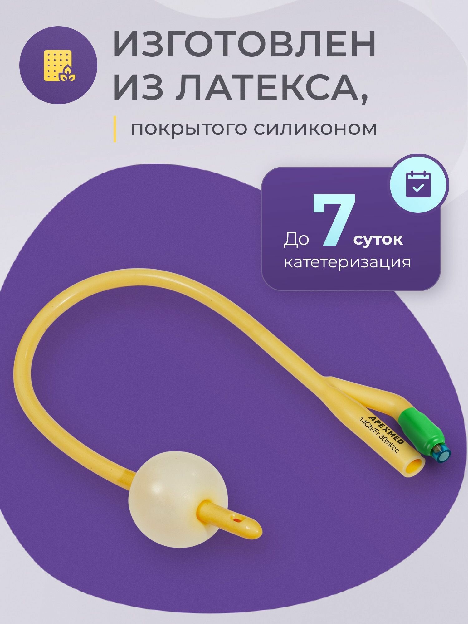 Катетер урологический Фолея Apexmed мужской, Ch/Fr 14, двухходовой, латексный, 2 шт, универсальный