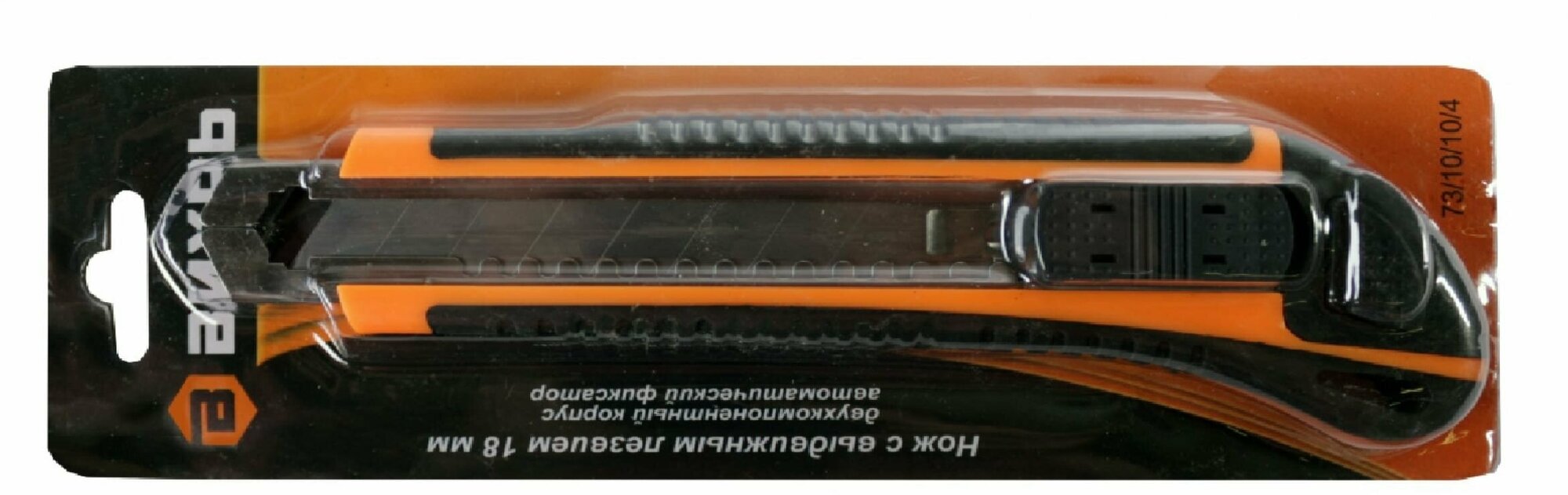 Нож Вихрь с выдвижным лезвием 18 мм, двухкомпонентный корпус, автоматический фиксатор, 73/10/10/4 интересное: