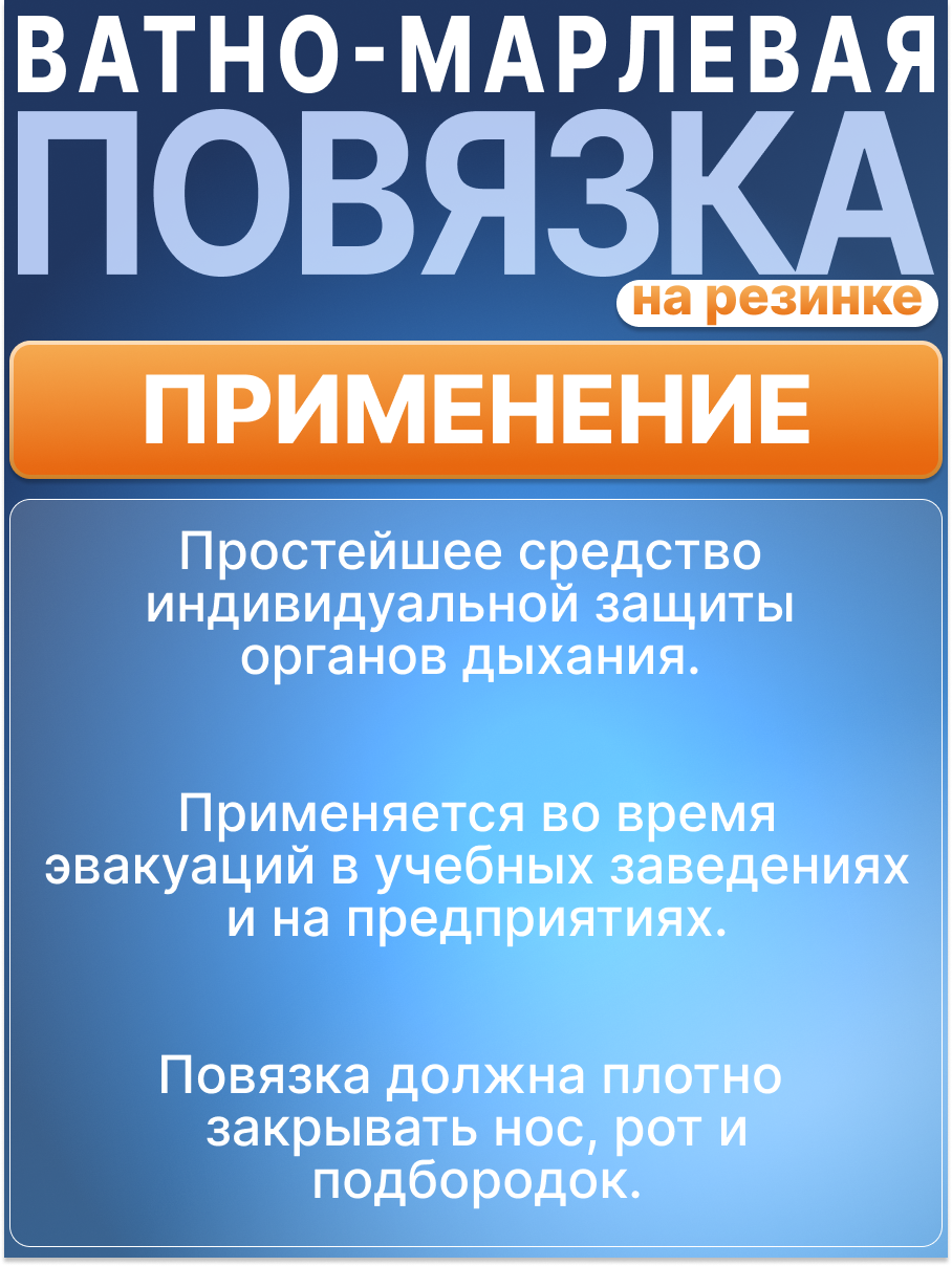 | Вид повязки | ватно-марлевая повязка (на резинке) |