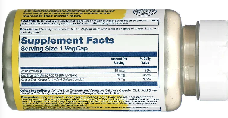 Solaray Zinc Copper Amino Acid Chelate (Цинк-медь с водорослями и семенами тыквы) 100 капсул интересное: