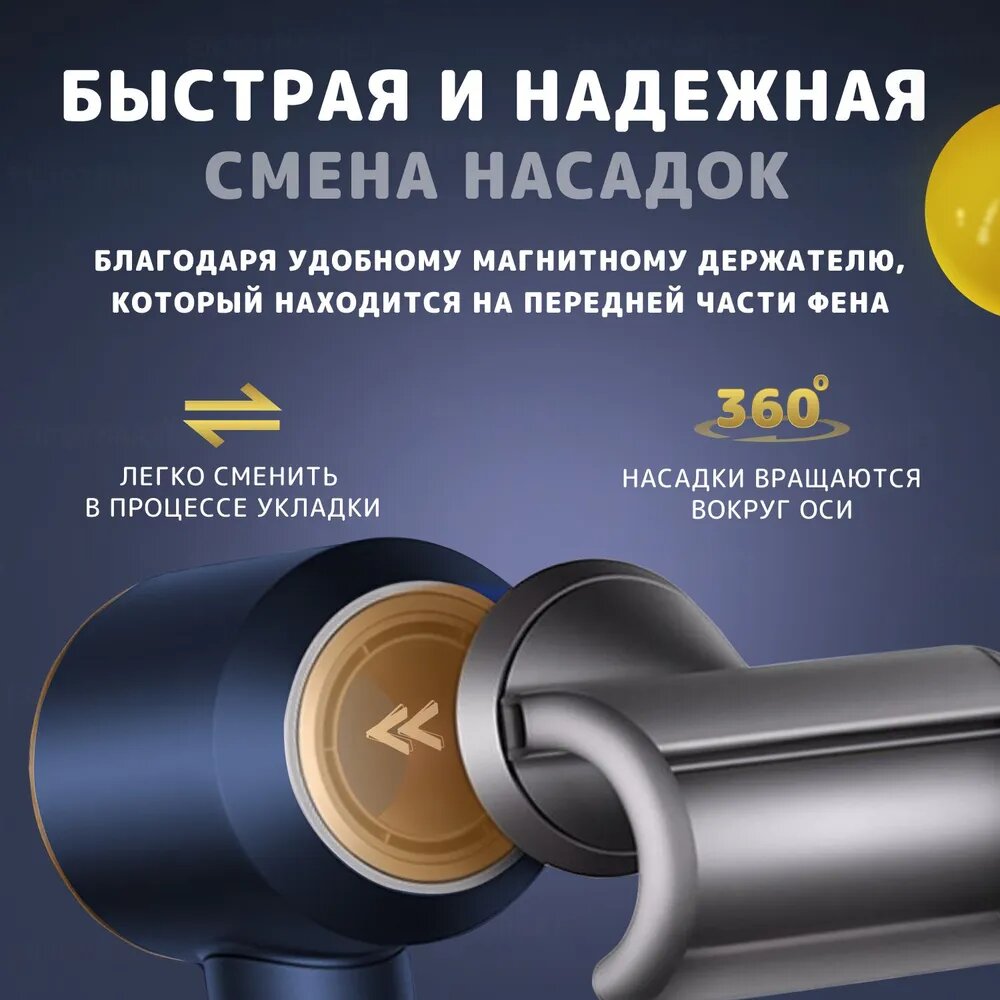 Профессиональный фен для волос 1600 Вт, 3 режима, 1 магнитная насадка, ионизация воздуха, фиолетовый
