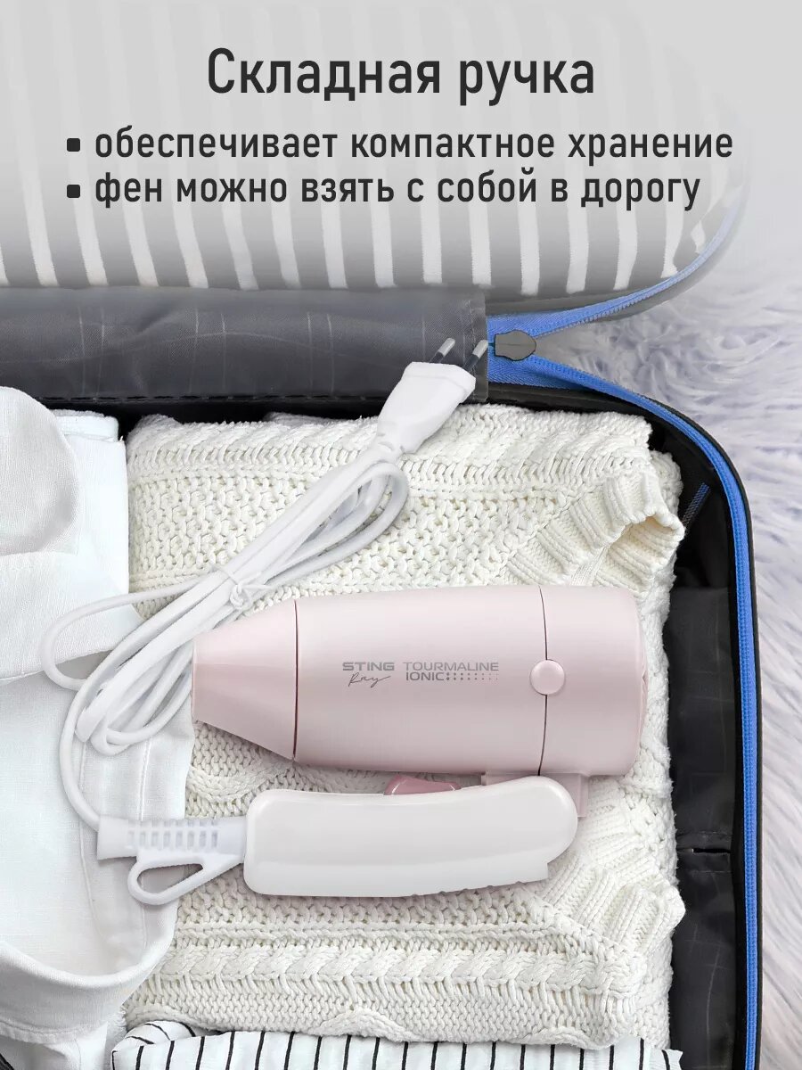 Фен со складной ручкой, дорожный, ионизация 1200 Вт