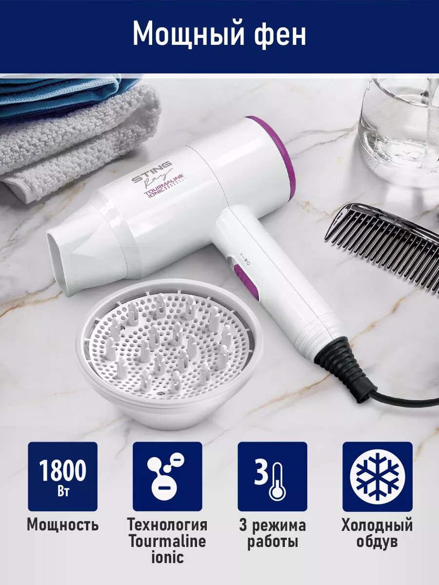 СохранитьФен STINGRAY ST-HD801A tourmaline ionic белая фуксия интересное: