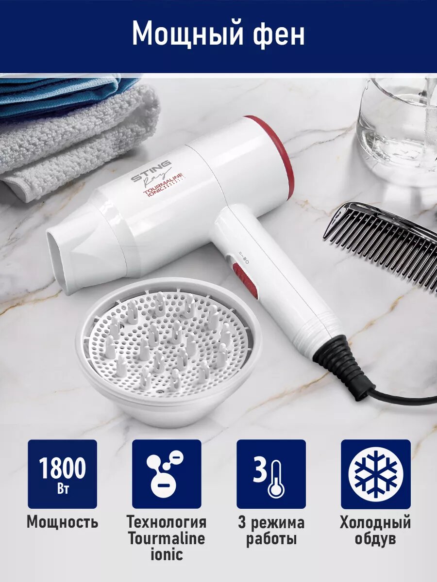 СохранитьФен STINGRAY ST-HD801A tourmaline ionic белый коралл интересное: