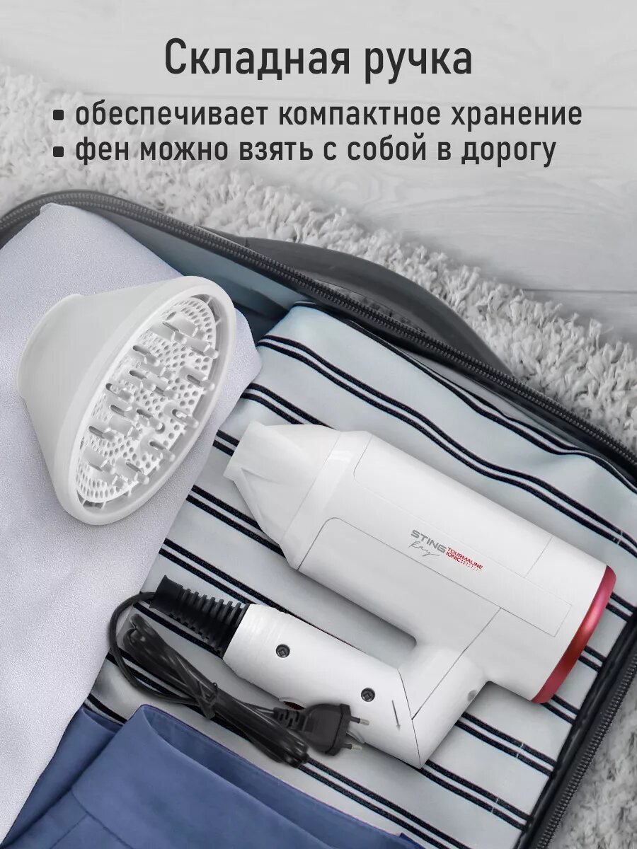Фен STINGRAY ST-HD801A tourmaline ionic белый коралл