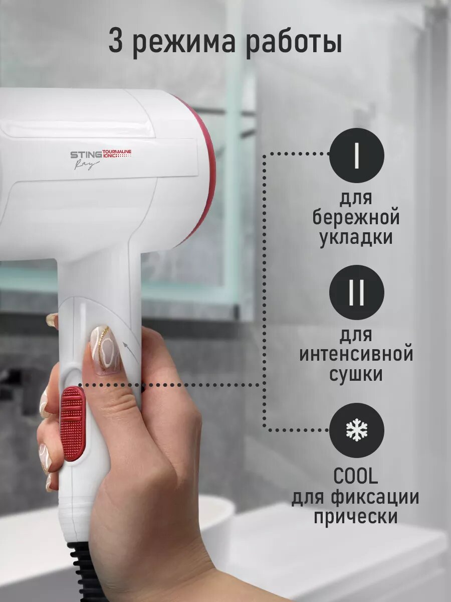Фен STINGRAY ST-HD800A tourmaline ionic белая фуксия