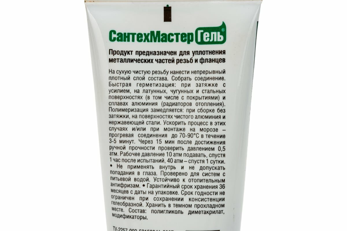 Гель анаэробный для резьбовых и фланцевых соединений тюбик 15гр зеленый СантехмастерГель 04013