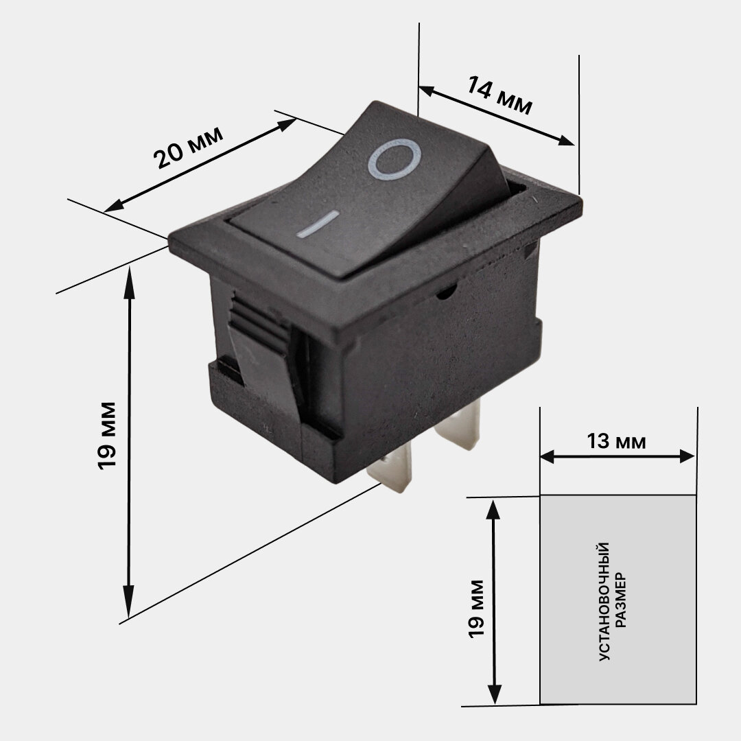 Выключатель клавишный (2 шт) серый Mini KCD1 250V 6А (2с) ON-OFF REXANT (комплект с клеммами и термоусадкой)
