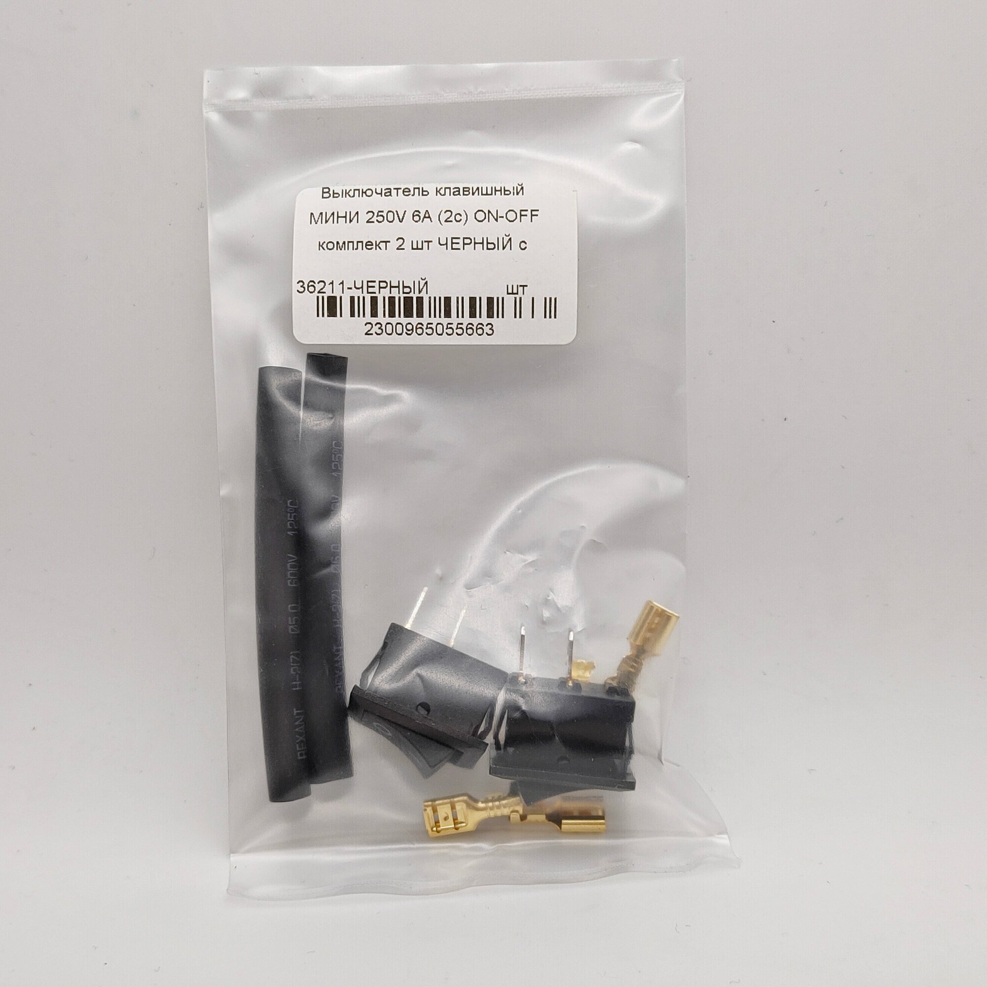 Купить Выключатель клавишный (2 шт) 36-2110 черный Mini 250V 6А (2с) ON-OFF REXANT (комплект с клеммами и термоусадкой)