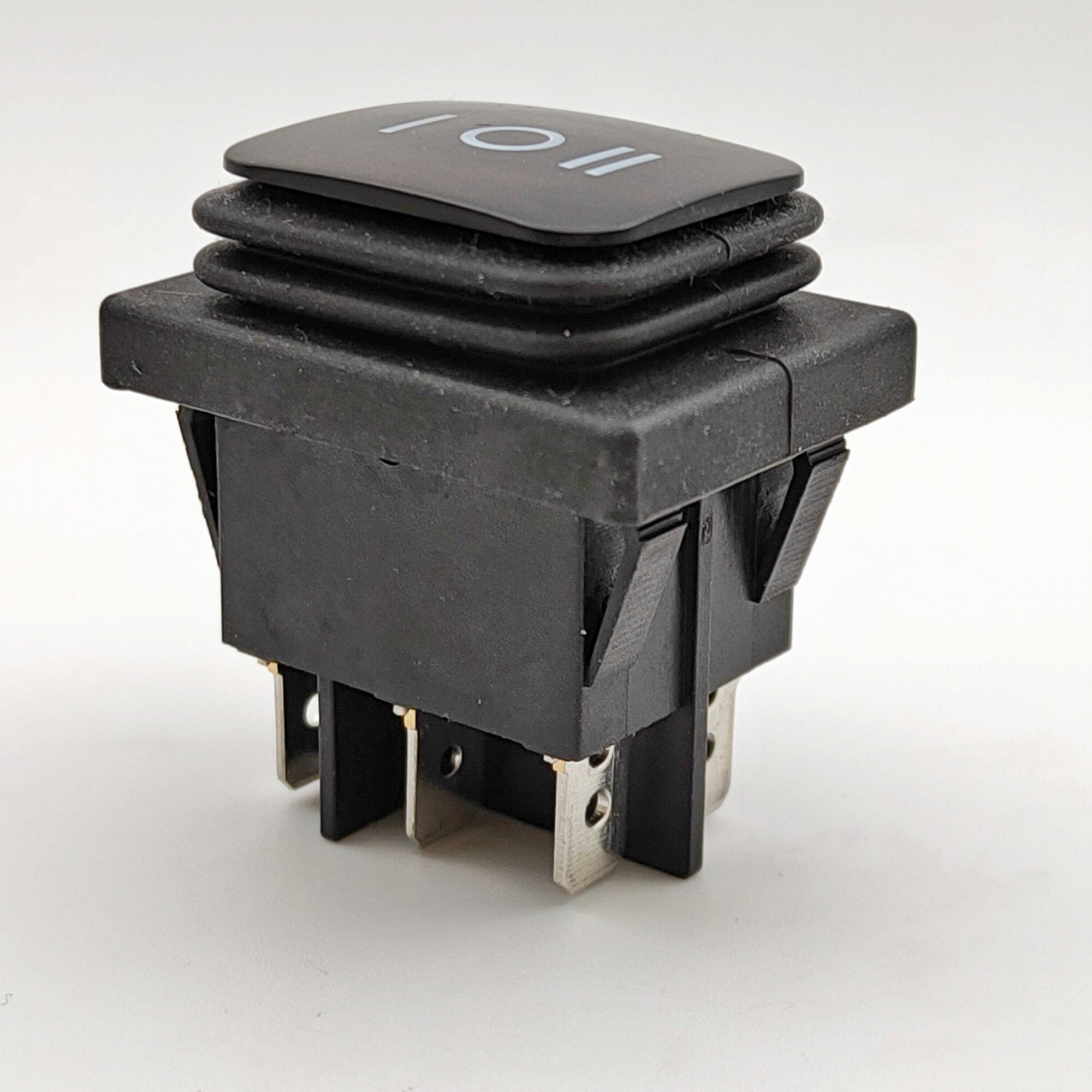Выключатель клавишный С нейтралью и влагозащитой 250В, 16А (6с) ON-OFF-ON черный, с фиксацией (+ клеммы и термоусадка)