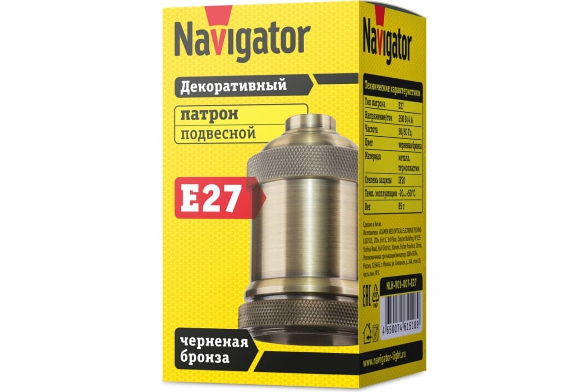 | Дополнительная информация | Патрон электрический Navigator 61 518 NLH-V01-007-E27 метал черненая бронза |