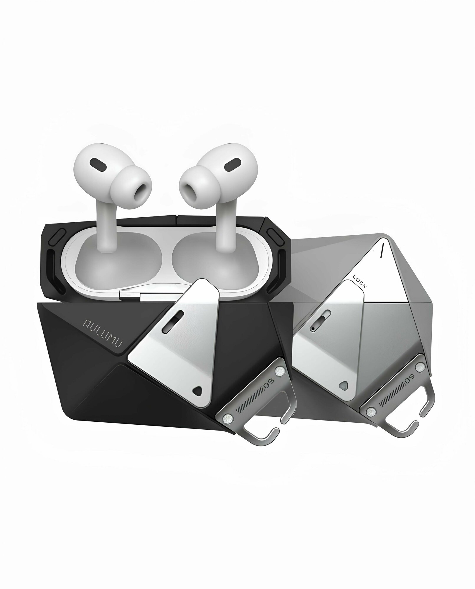 Чехол на Airpods Pro 2 (и 1) защитный, Aulumu A09 Geometric Case, ремешок, черный интересное:
