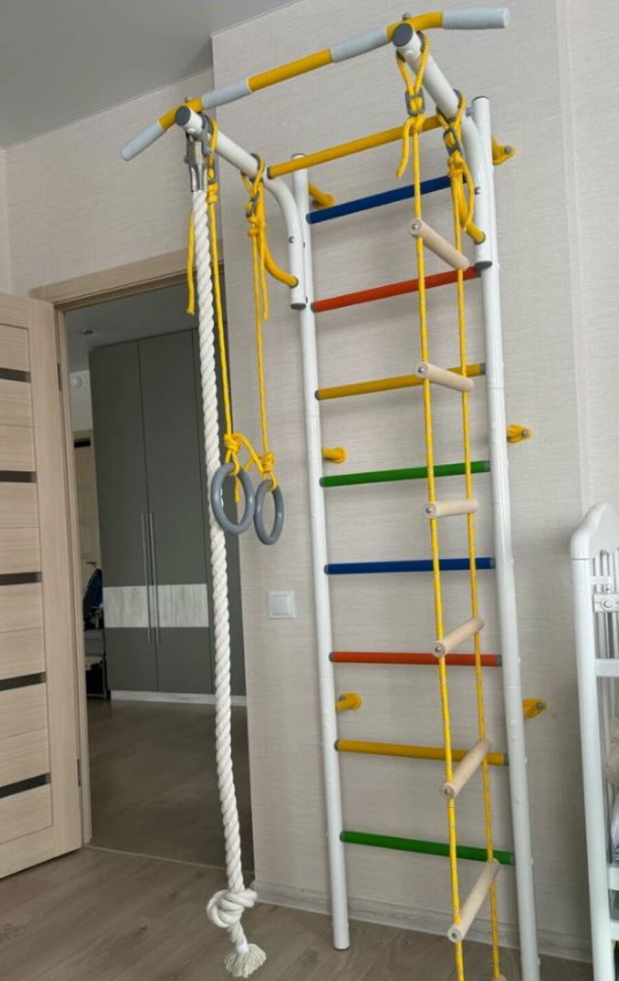 | Комплектация | веревочная лестница / гамак / гимнастические кольца / канат / турник |