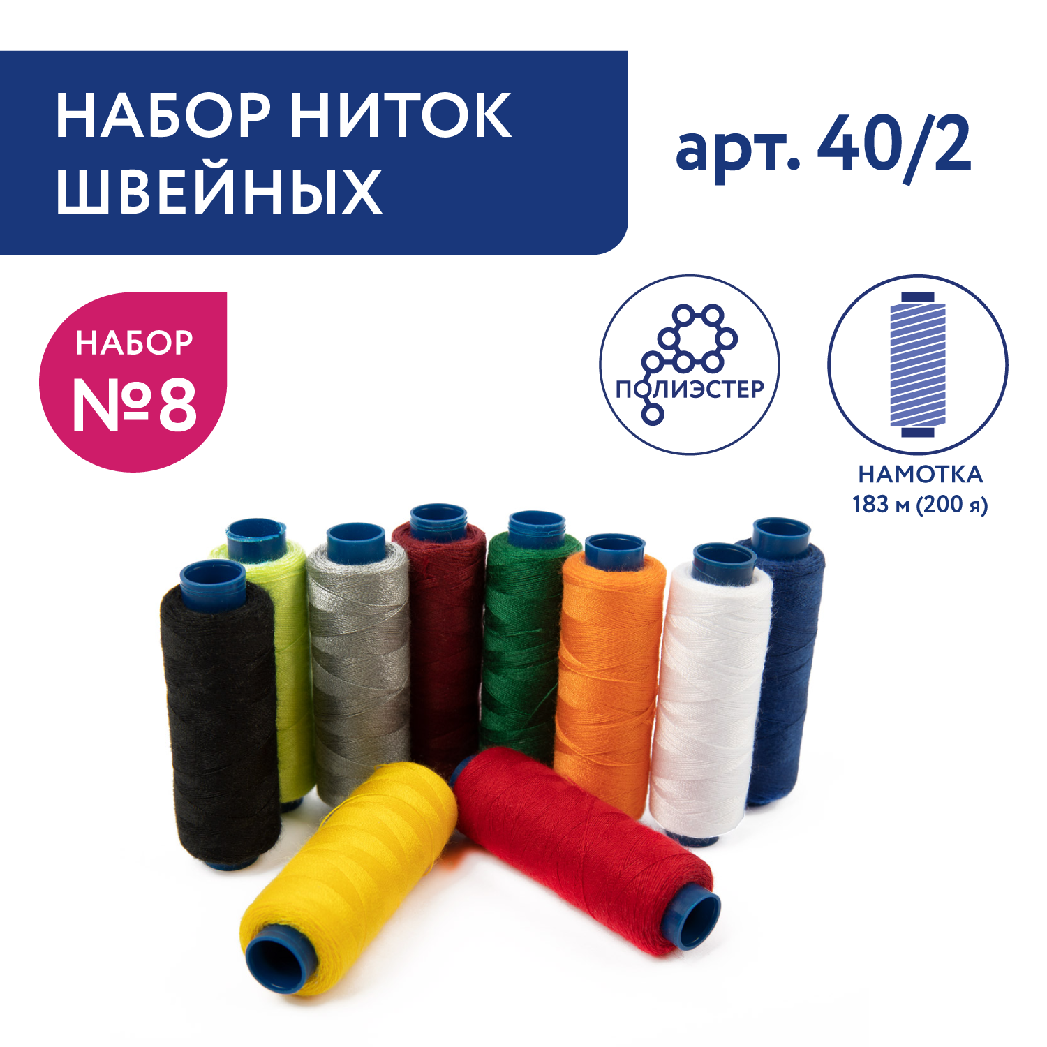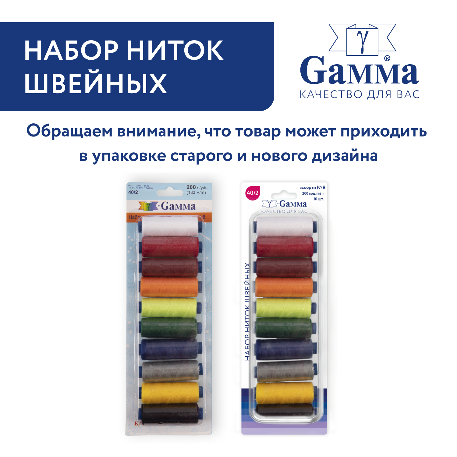 Купить Швейные нитки 40/2 Gamma набор ассорти 200 я 183 м 10 шт Набор №08