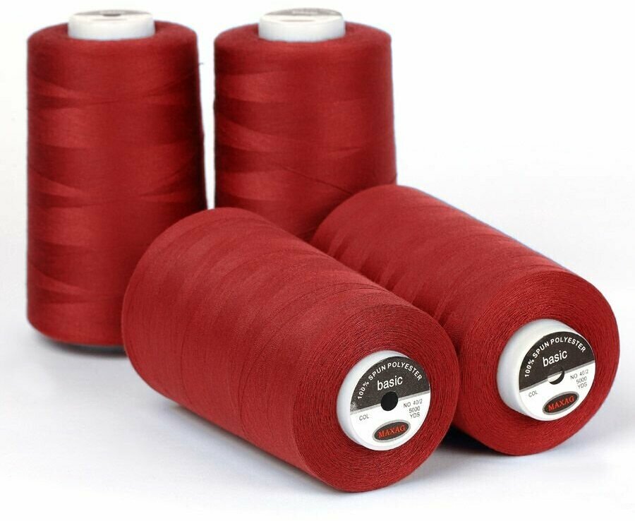 Нитки швейные MAXAG basic, 40/2, полиэстер, 5000 ярд, цвет 184 бордовый MAX, уп.4шт