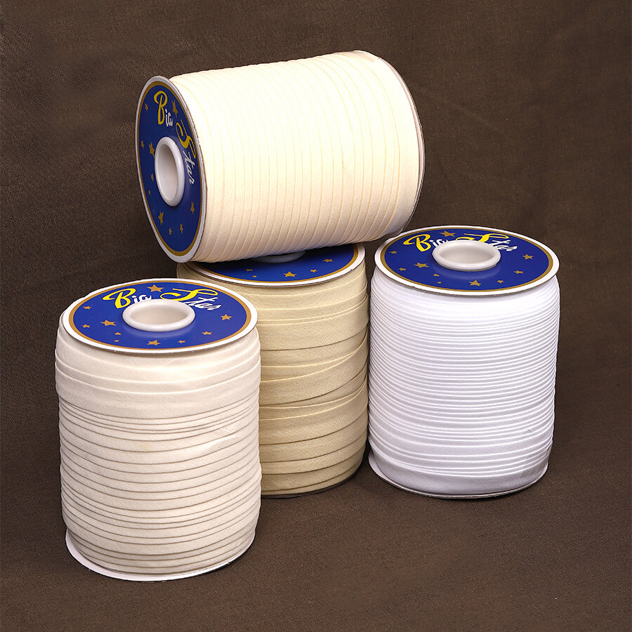 Косая бейка хлопок TBY арт. CB15 шир.15мм цв. F104 молочный уп.132 м