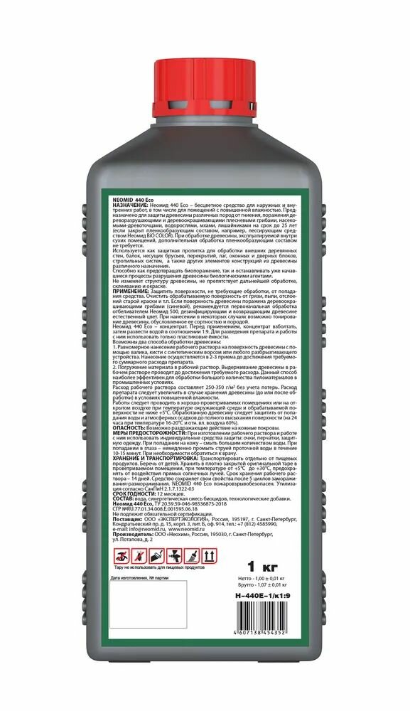 Антисептик для дерева NEOMID 440 концентрат 1:9 проникновения бесцветный 1 кг (10кг готового раствора)