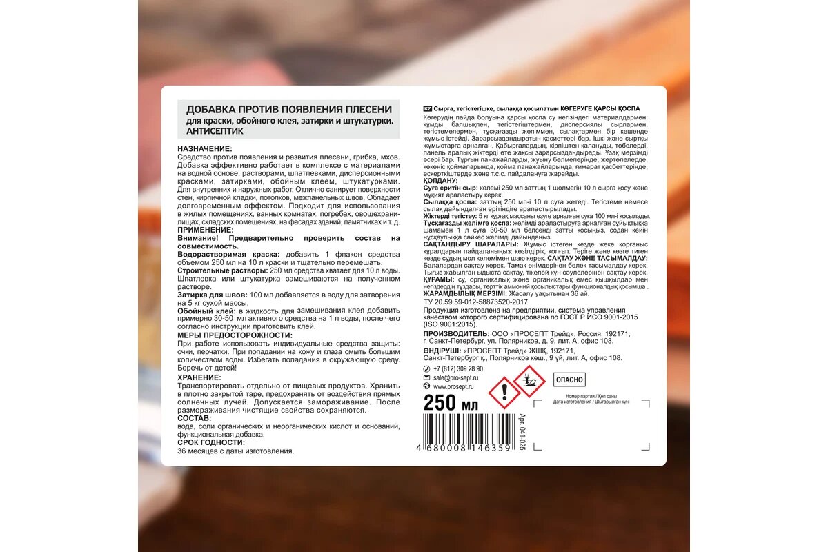PROSEPT FUNGI STOP - добавка против появления плесени в краску, шпатлевку, штукатурку, 0,25л 041-025