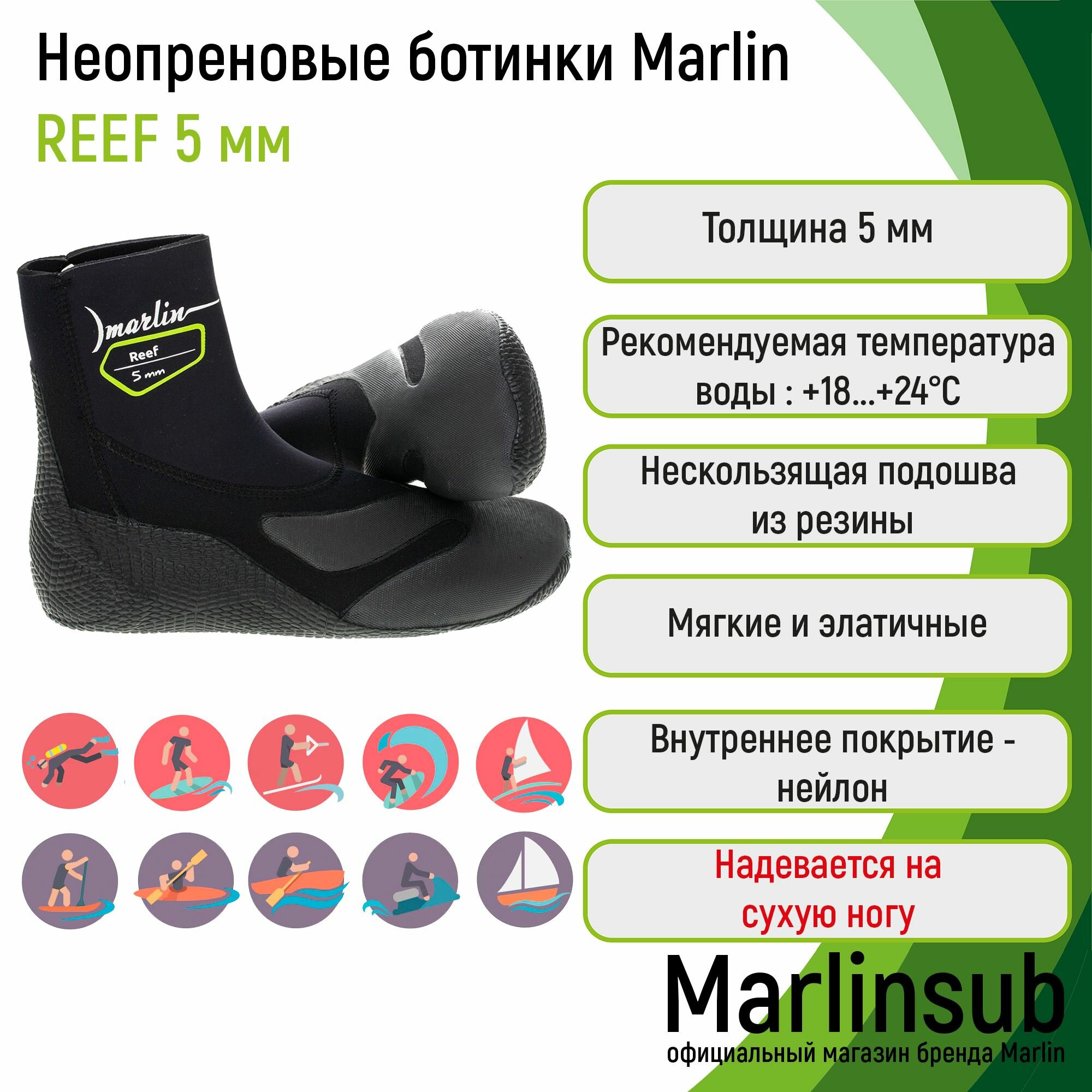 Неопреновые боты для водных видов спорта Marlin Reef 2.0 5 мм XXL интересное: