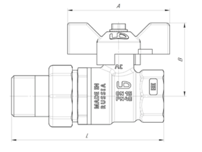 Кран шаровой LD Pride 47.25. В-ГШ. Б, вн. резьба/"американка", ручка-бабочка, 1"