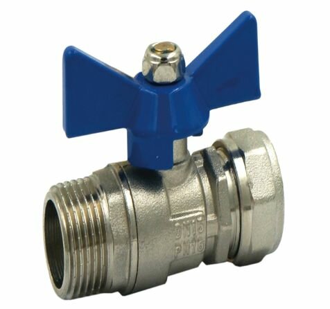 Купить Кран шаровый никелированный 1/2" нар - Ф16 цанга (синяя ручка-бабочка)TIM BV206-02MN