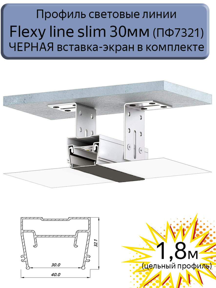 Профиль световые линии Flexy line slim 30мм для натяжного потолка, вставка ПК в комплекте, 1,8м