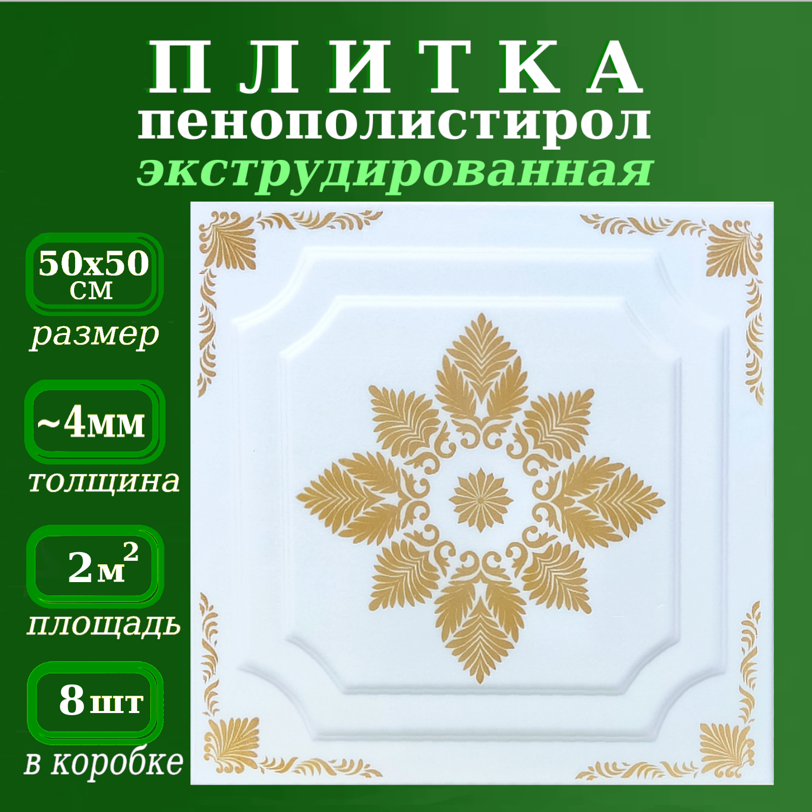 Плитка потолочная из пенопласта с рисунком экструдированная 50х50см
