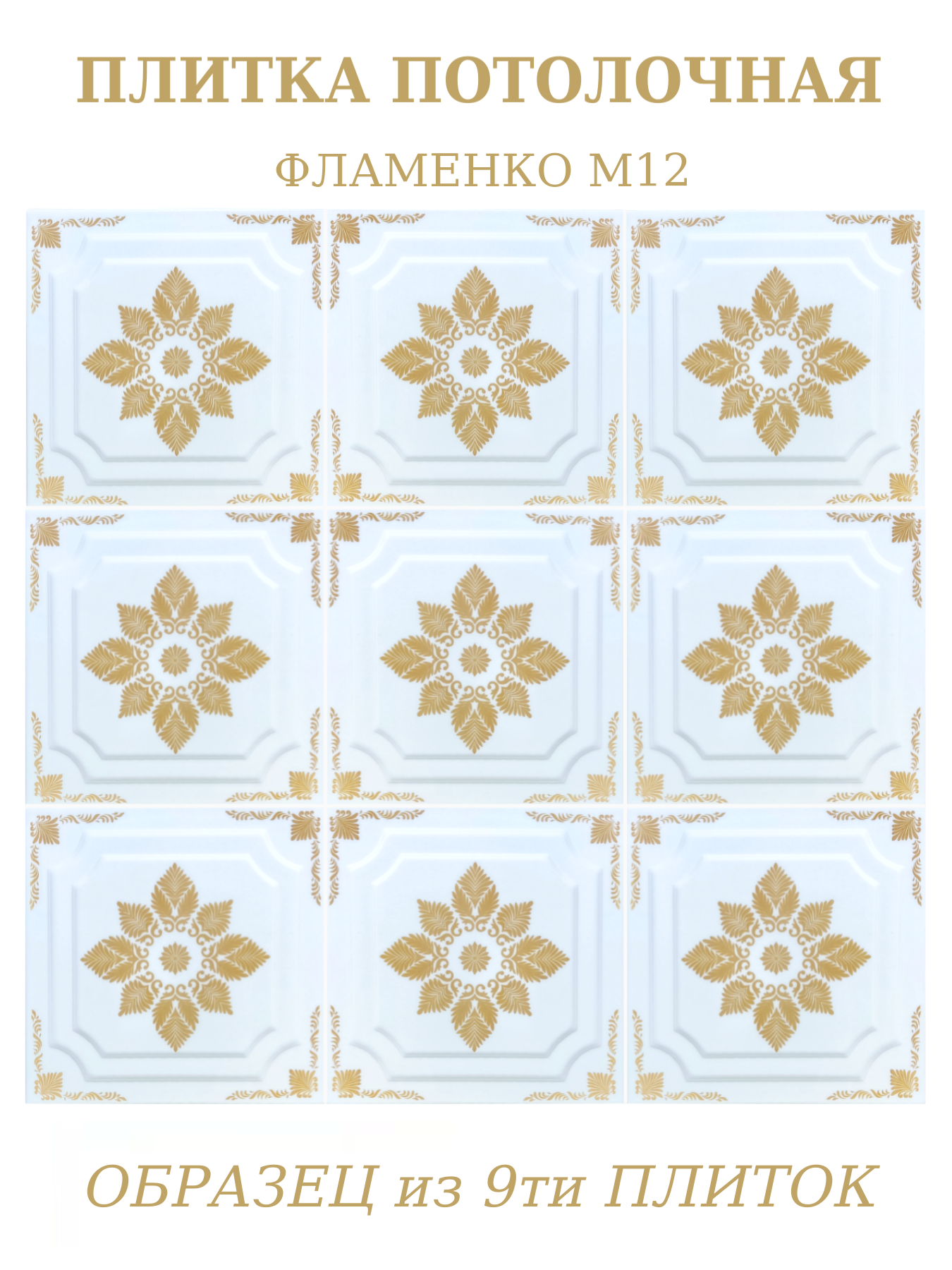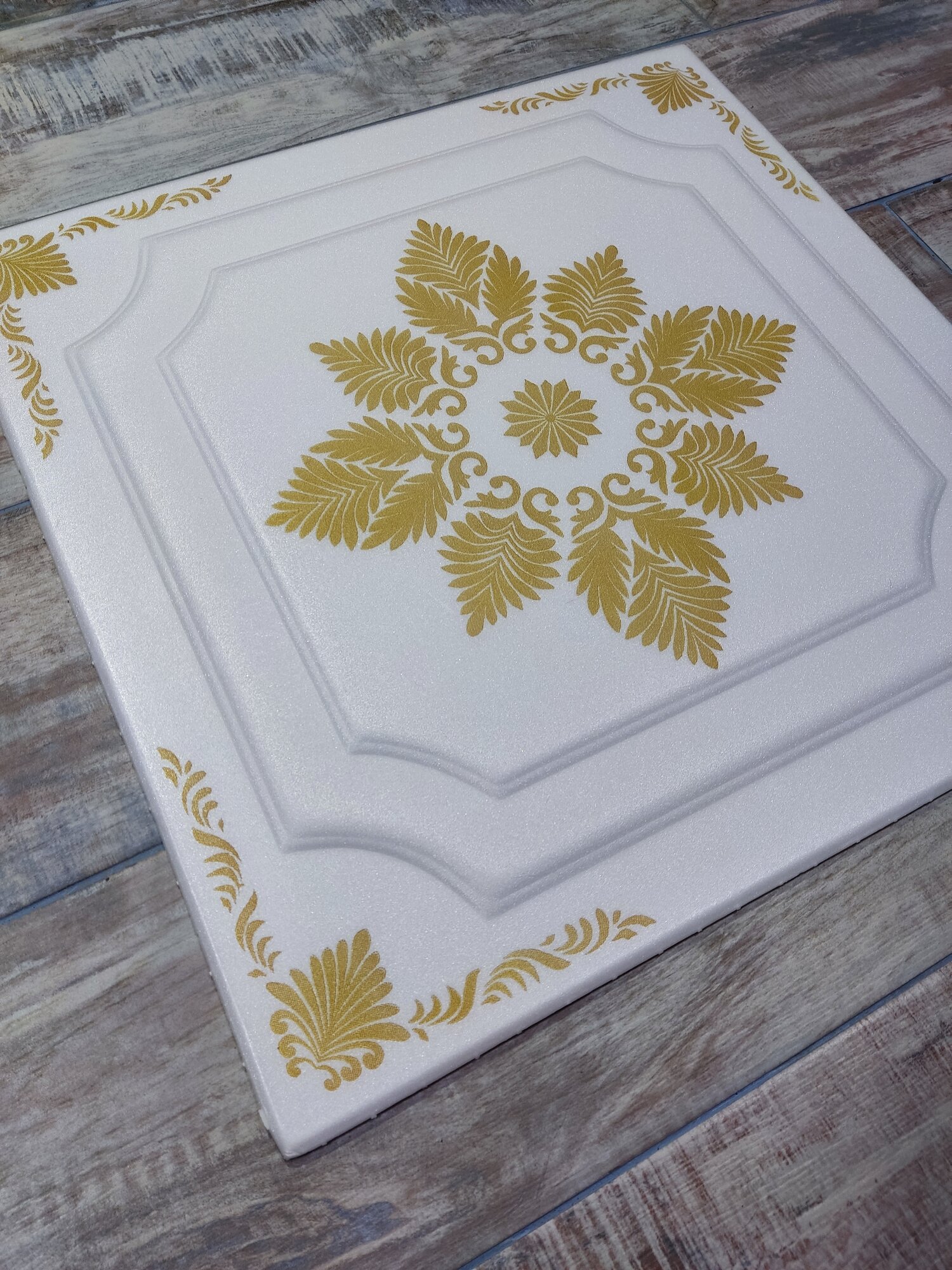 Плитка потолочная экструдированная с золотым рисунком из полистирола