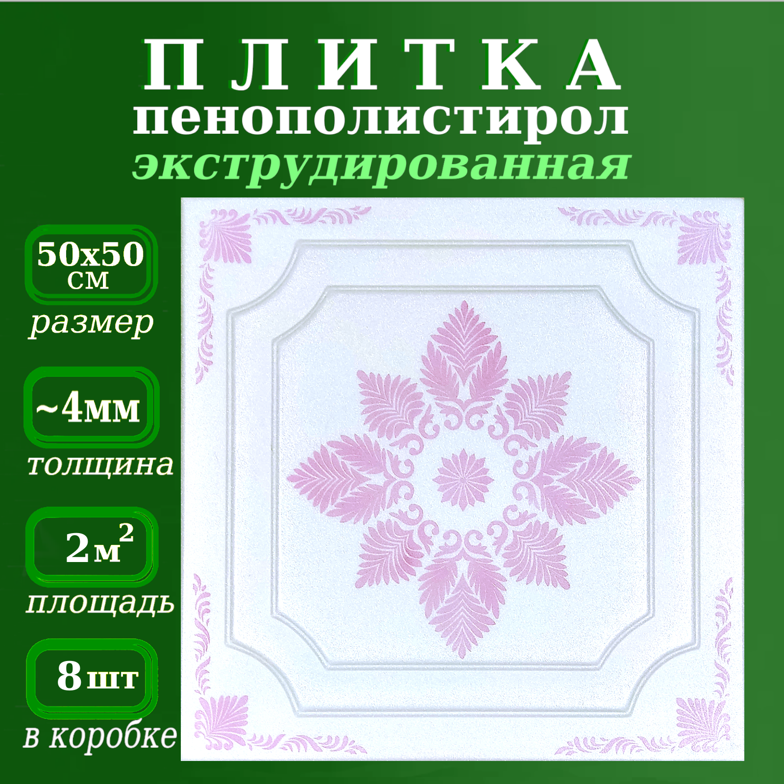 Плитка потолочная из пенопласта с рисунком экструдированная 50х50см