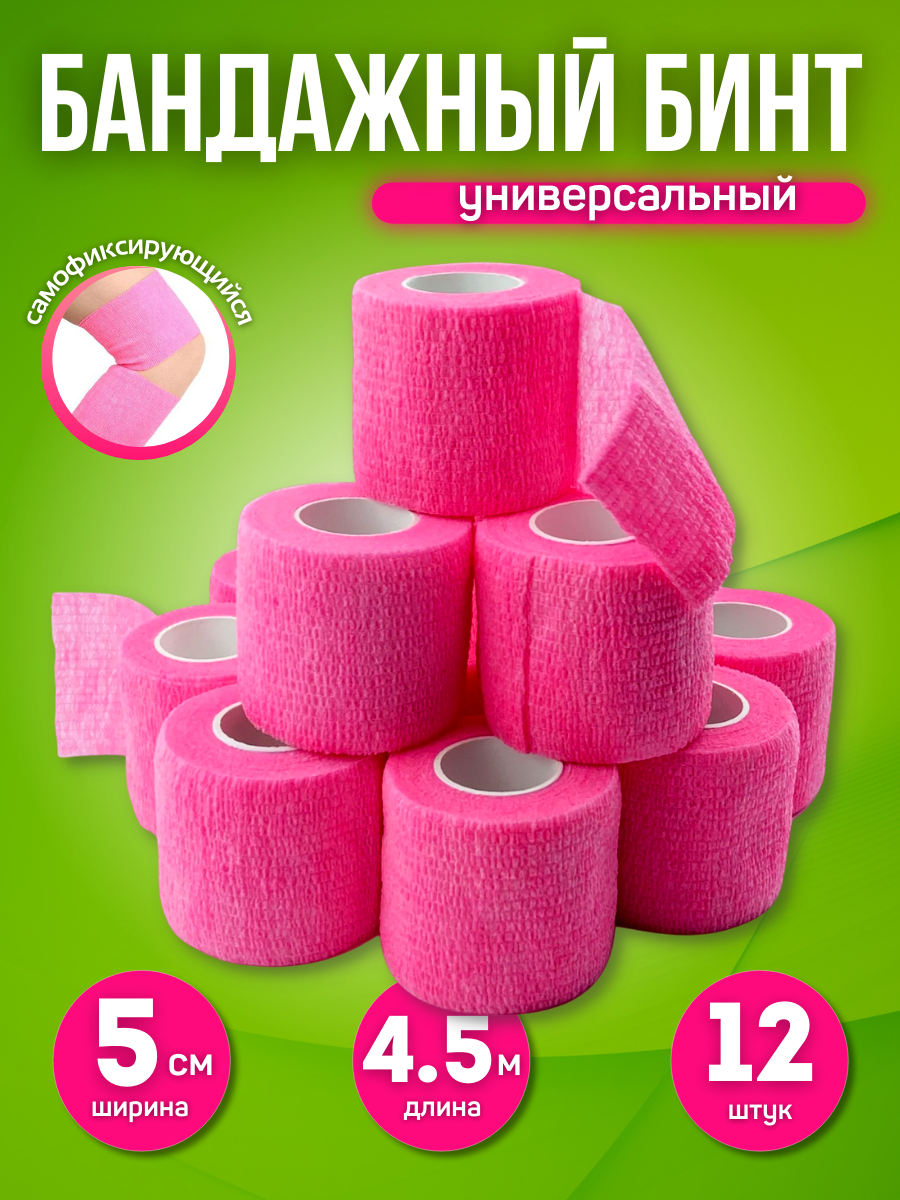 Купить Бандажный бинт самофиксирующийся эластичный когезивный для тату розовый - 12 шт