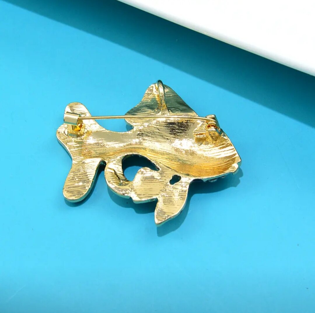 Брошь булавка женская рыбка эмаль стразы бижутерия