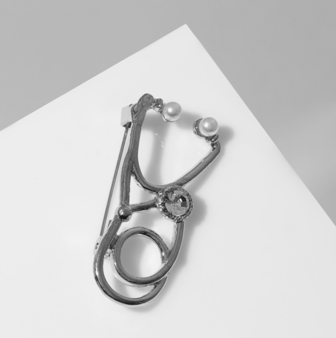 Брошь "Фонендоскоп" врача, цвет белый в серебре