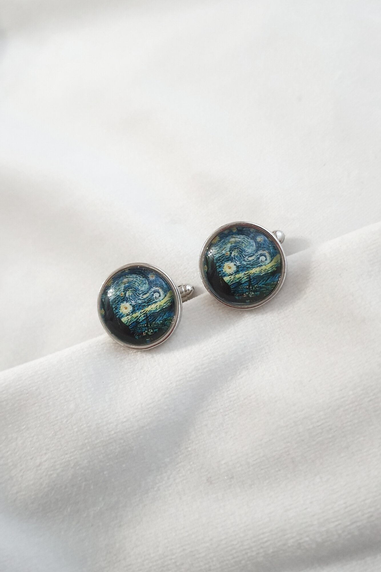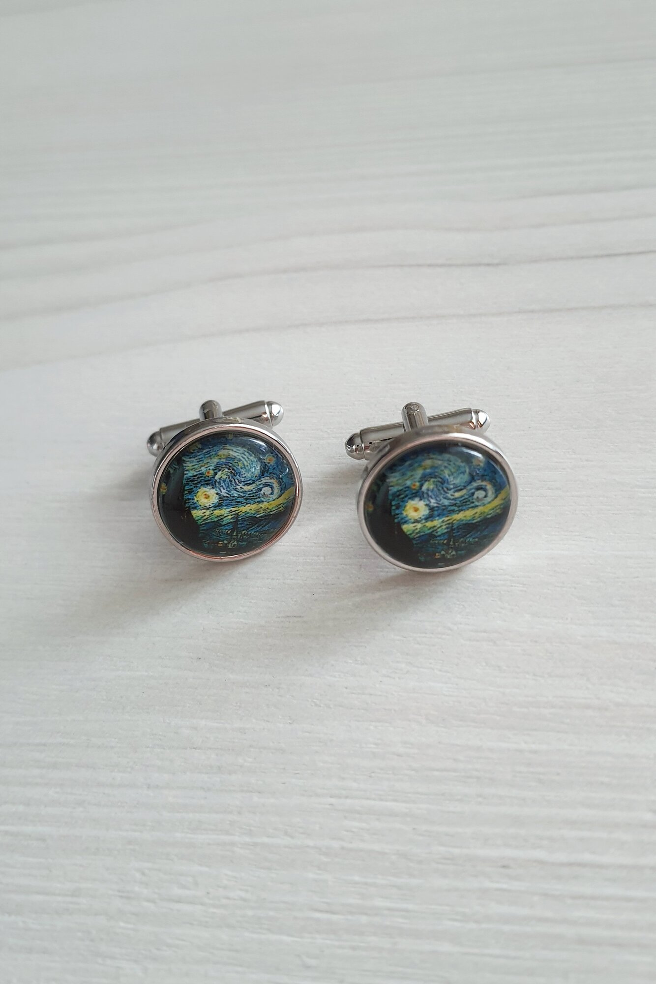 Запонки круглые синие Ван-Гог