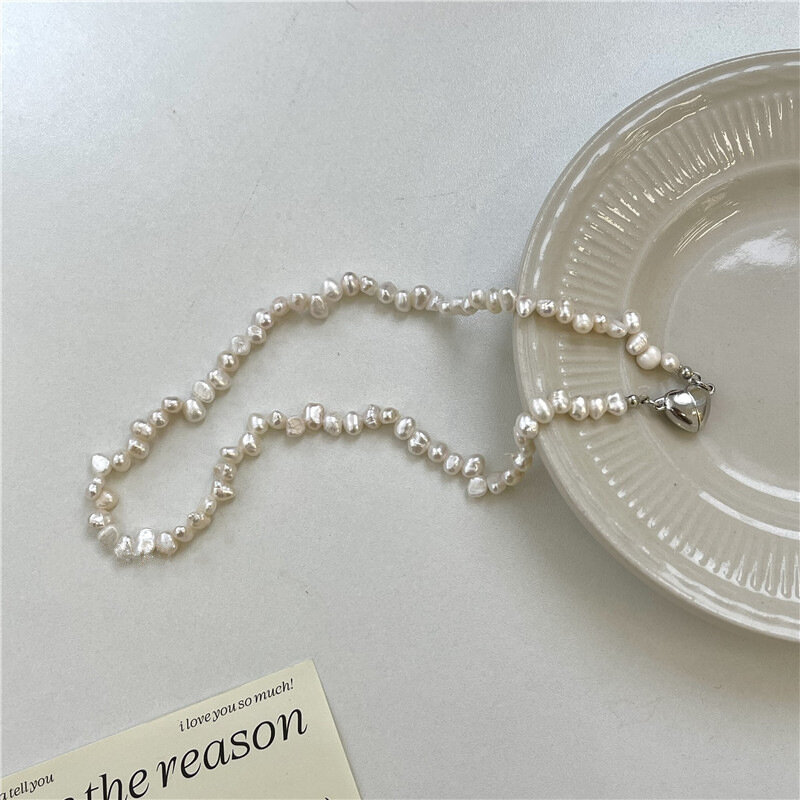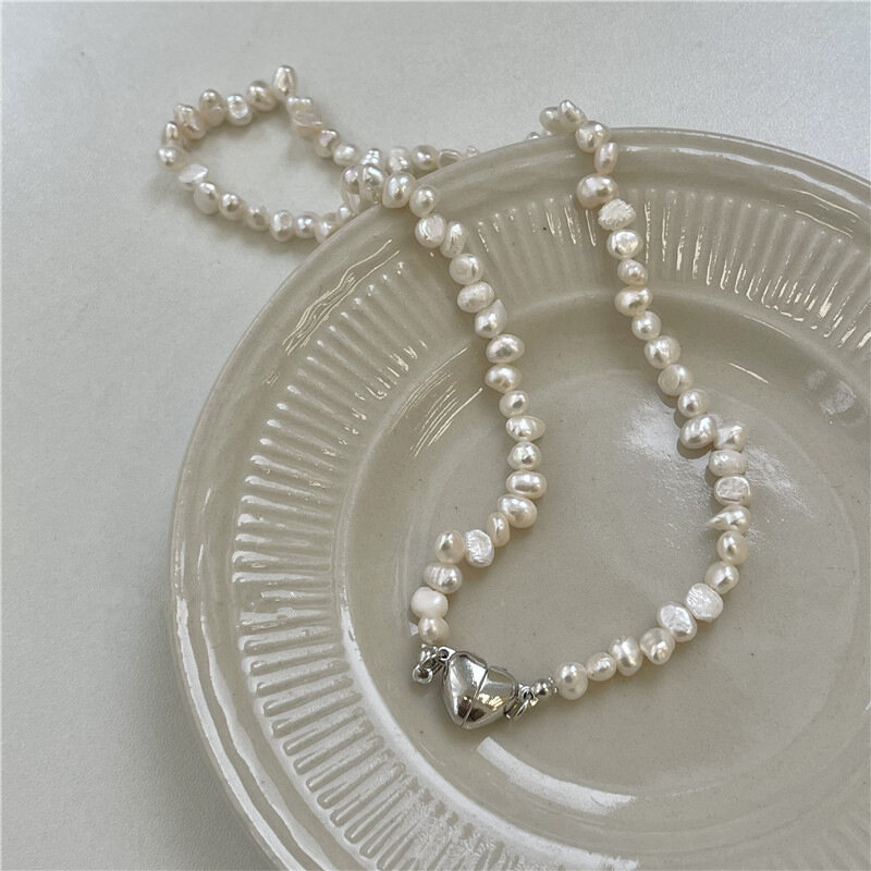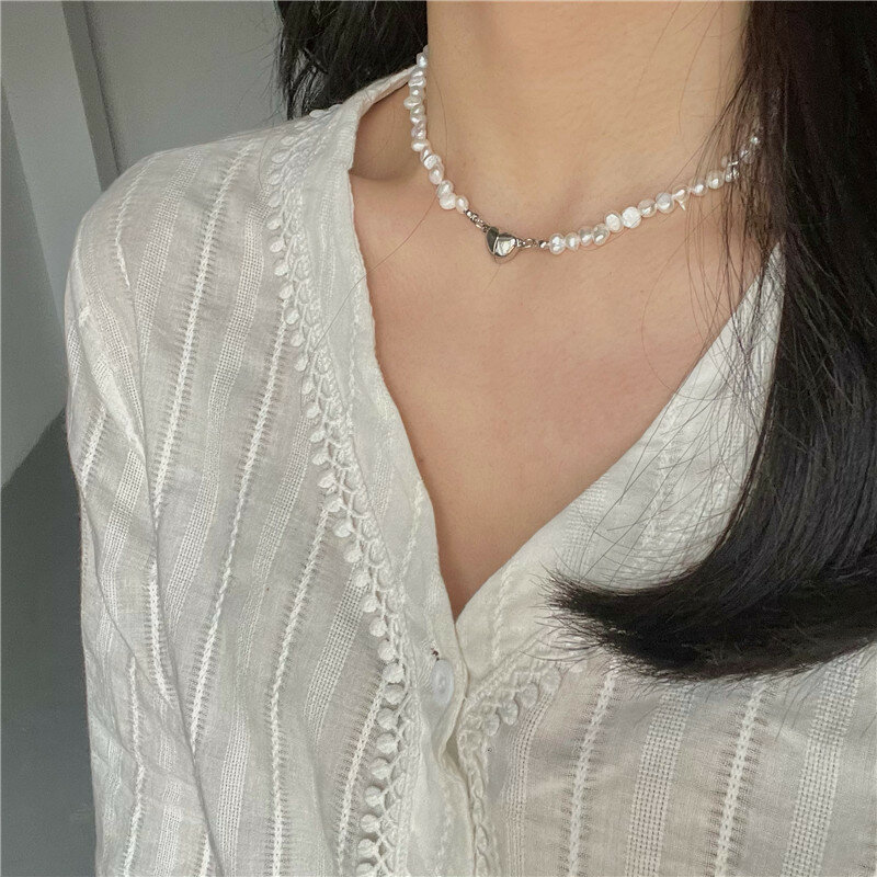 Чокер ElysiumLab жемчуг с магнитным замком и кулоном в виде сердца, белый и серебряный, 42см