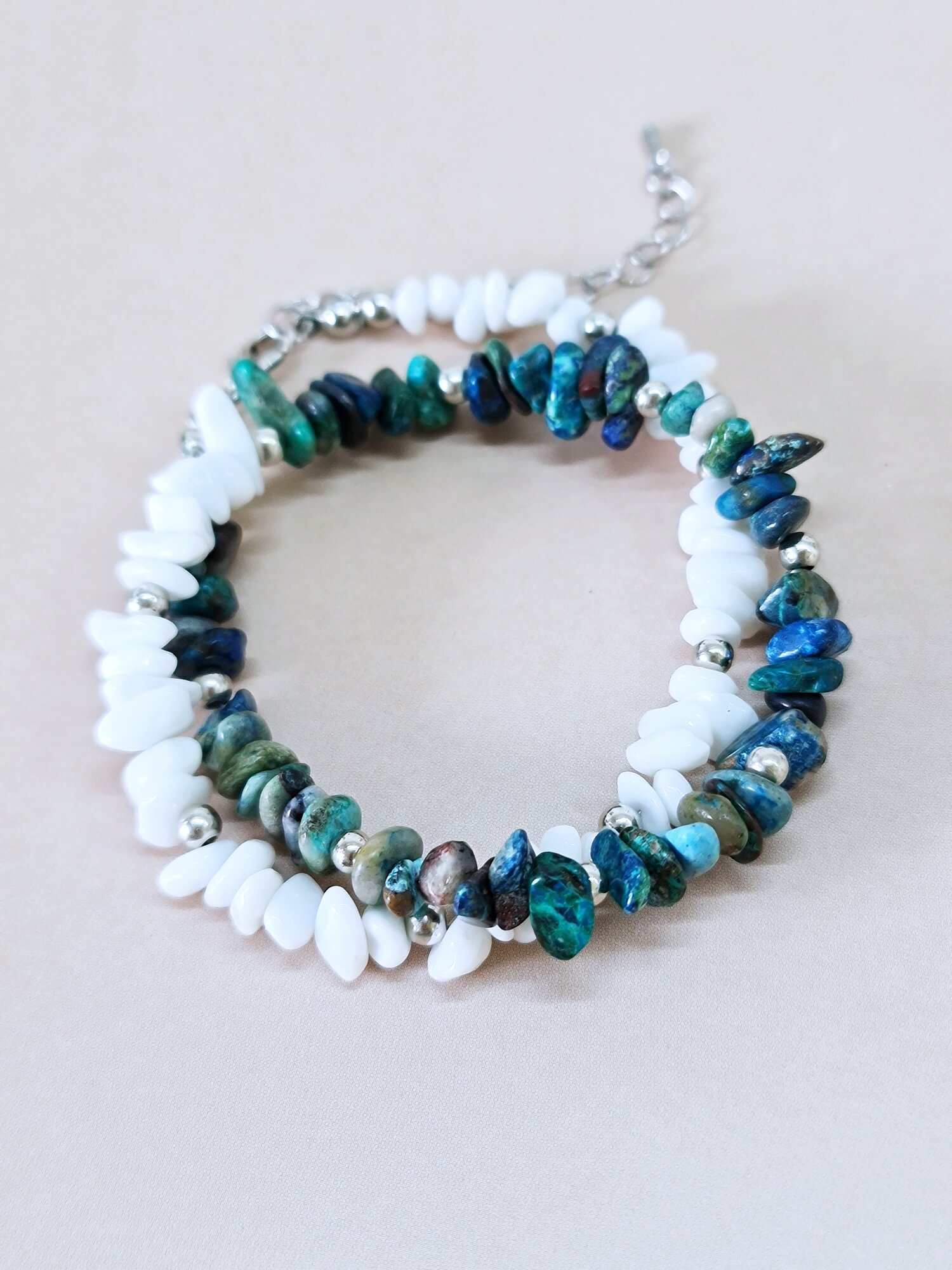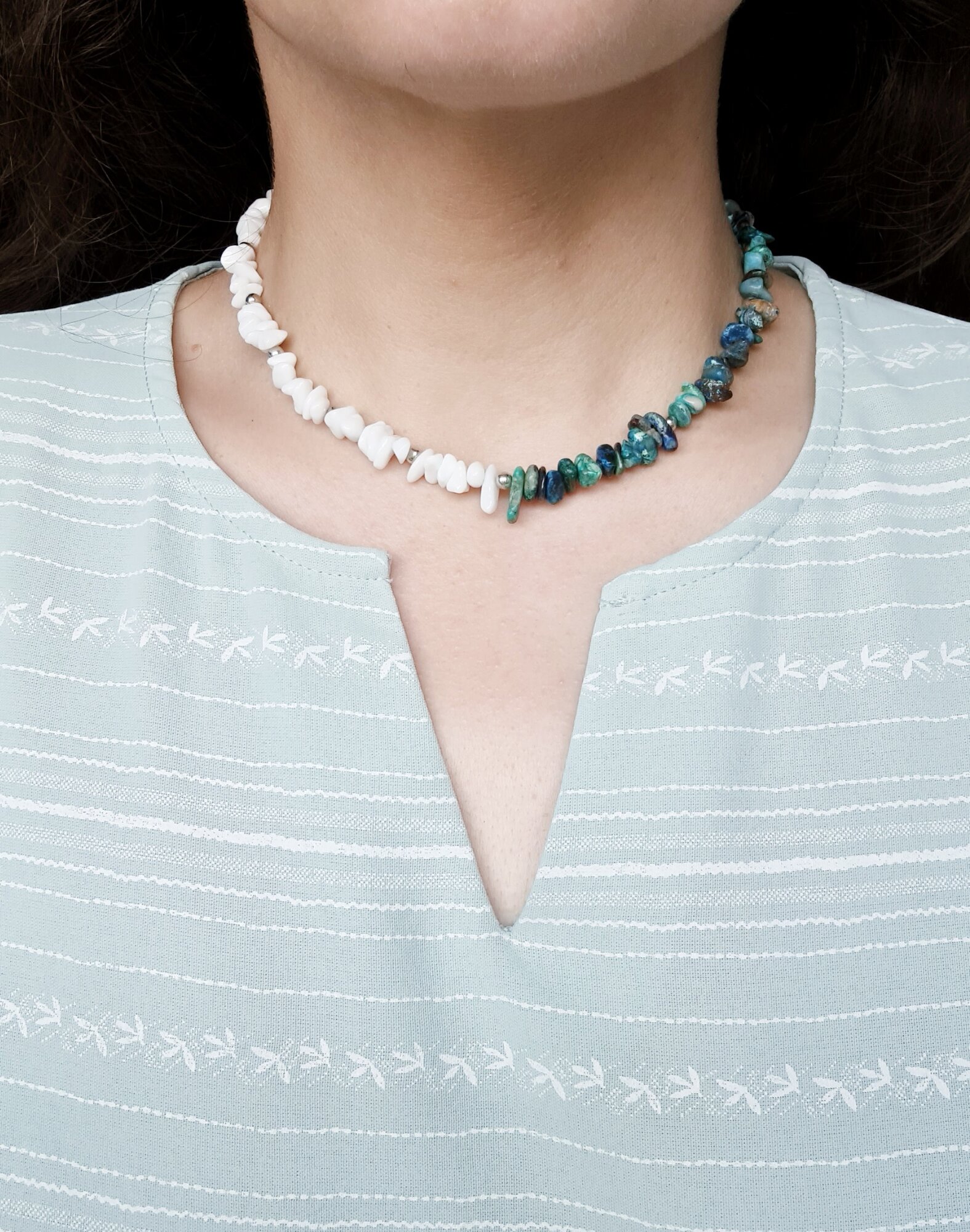 Чокер ENJOY Maldives Colorblock ожерелье бусы из агата и хризоколлы голубые белые ручная работа