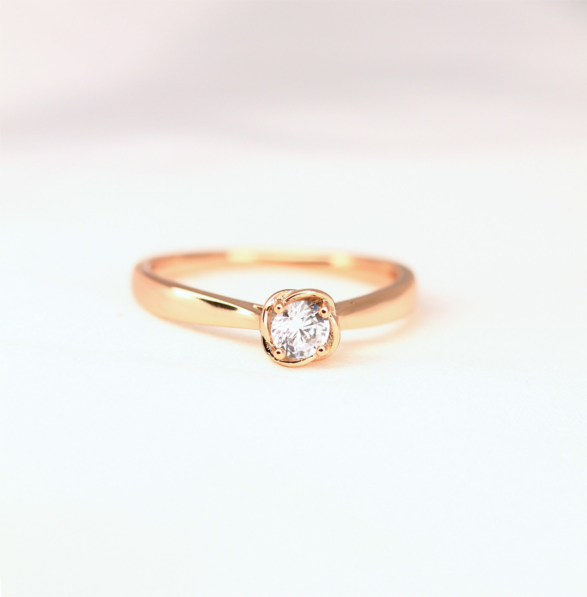 Кольцо помолвочное XUPING JEWELRY, фианит, искусственный камень, размер 18, золотой, бесцветный