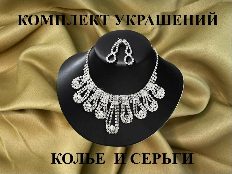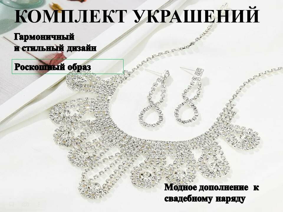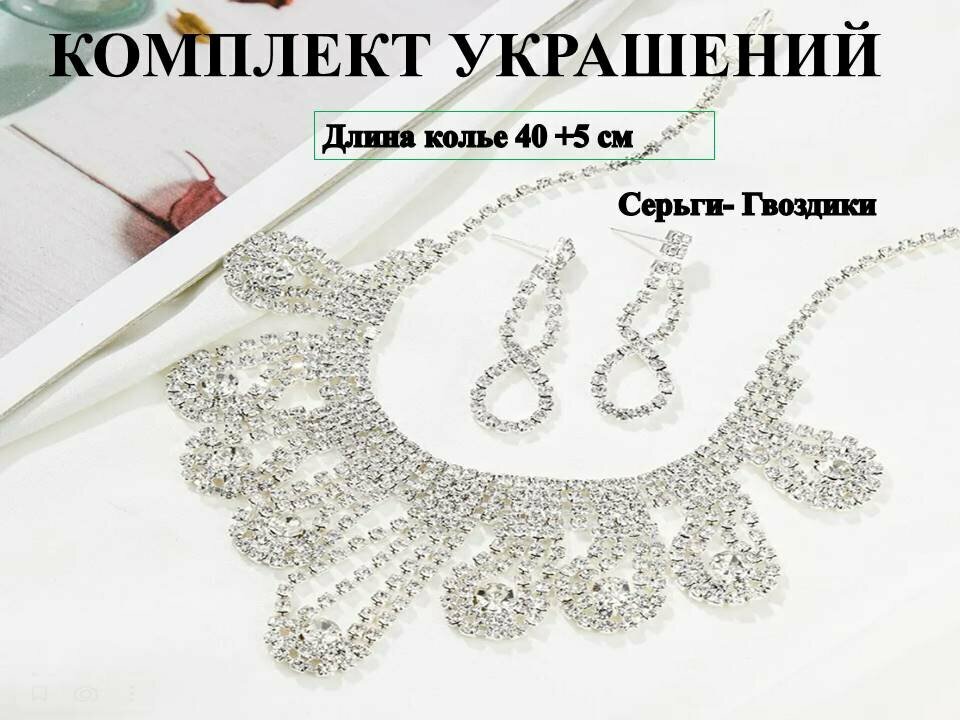 Комплект бижутерии: колье, серьги, горный хрусталь, размер колье/цепочки 45 см, серебристый