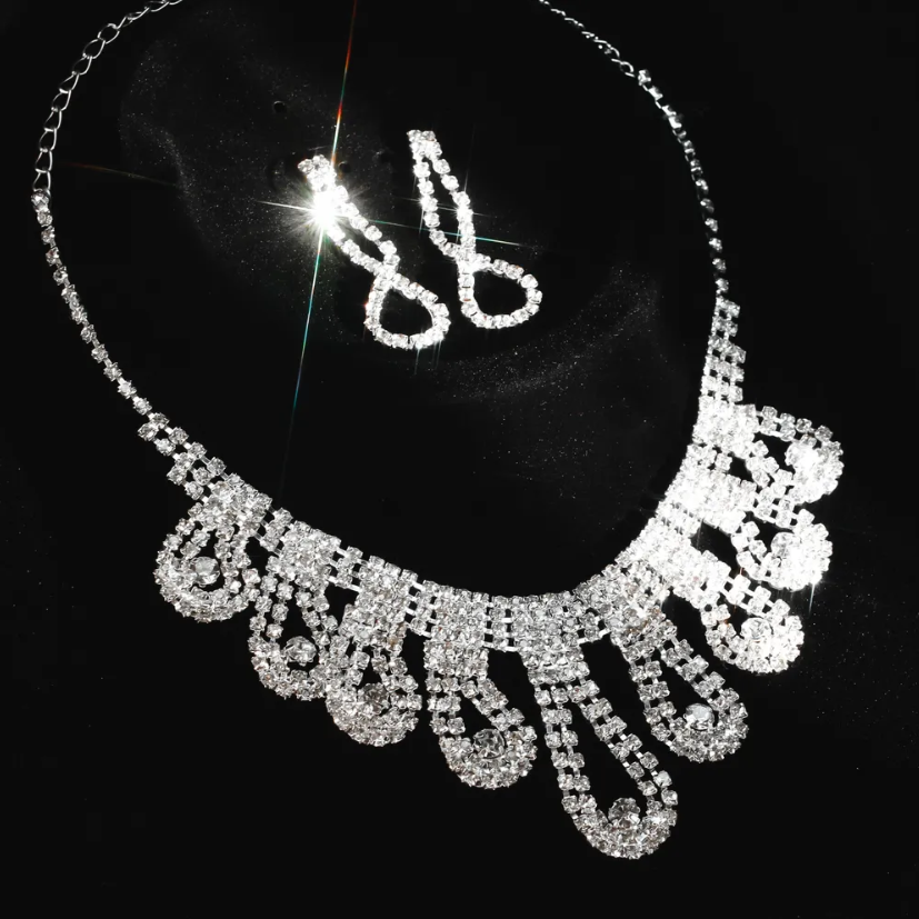 Набор 2 предмета: серьги колье "Роскошь" цвет белый в серебре